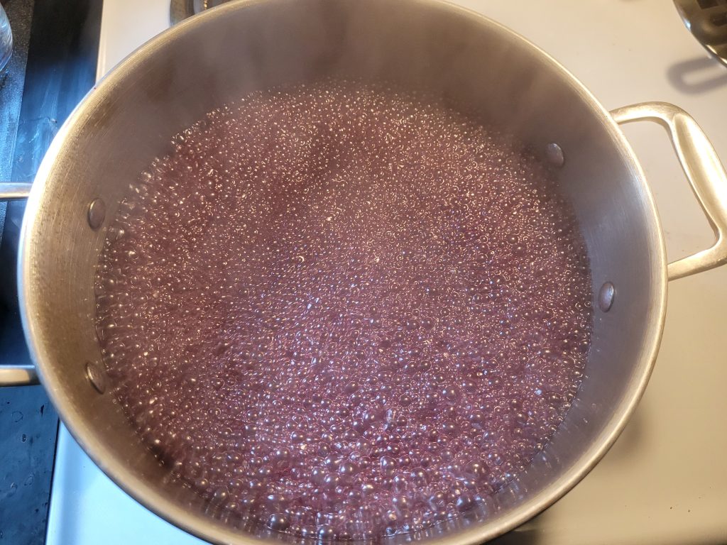 - Add sugar to the juice and boil it down to thicken the syrup.